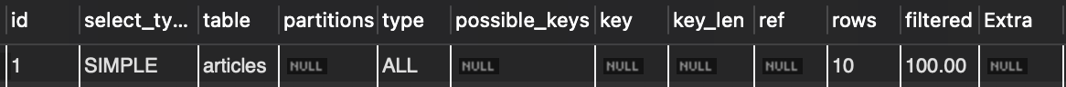EXPLAIN SELECT * FROM articles;