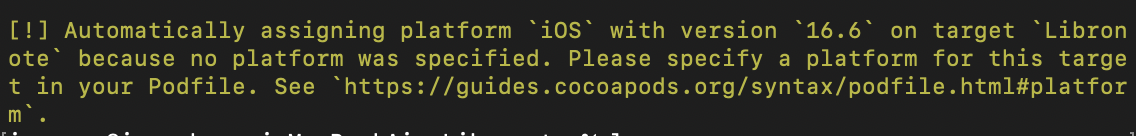 Troubleshooting - CocoaPods pod install Automatically assigning platform iOS with version 16.6 on target ... because no platform was specified. 해결