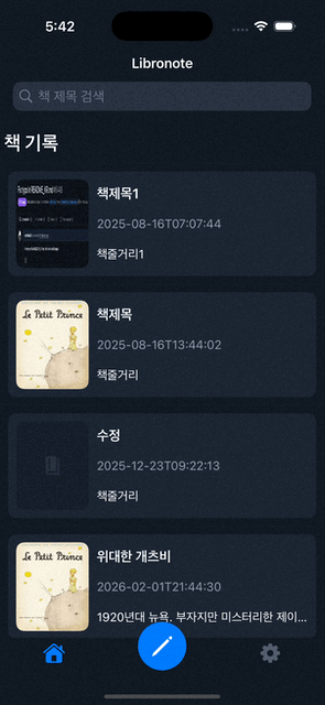현재 내가 구현한 탭바는 아래 이미지와 같이 가운데 표시된 버튼을 통해 새로운 책 기록을 등록할 수 있는 화면으로 이동하도록 구현해둠.