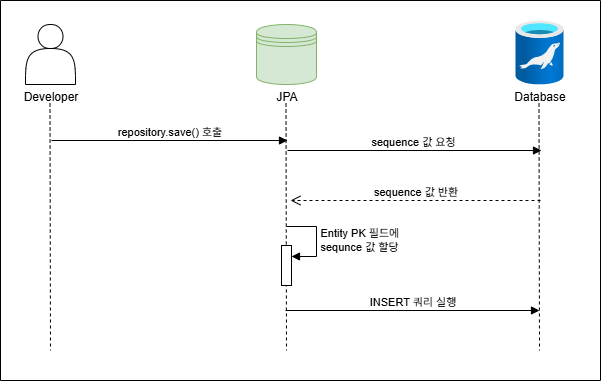 JPA에서 SEQUENCE 키 생성 전략을 사용할 경우 동작 구조는 아래와 같다.