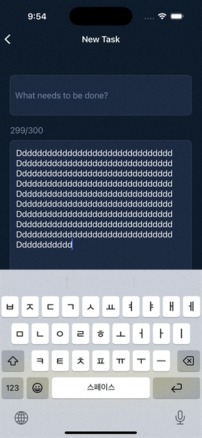 사이드 프로젝트로 진행하던 할일 관리 앱의 할일 추가 화면을 기존에는 사용자가 입력하는 글자가 UITextView height 크기를 넘어가면 동적으로 늘어나도록 설정하였음.