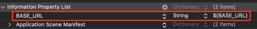 Info.plist 파일에 아래와 같이 환경 변수를 설정해줌.